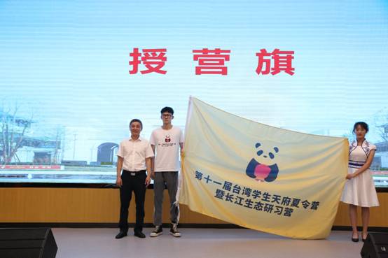 白刚向台湾学生代表授营旗。