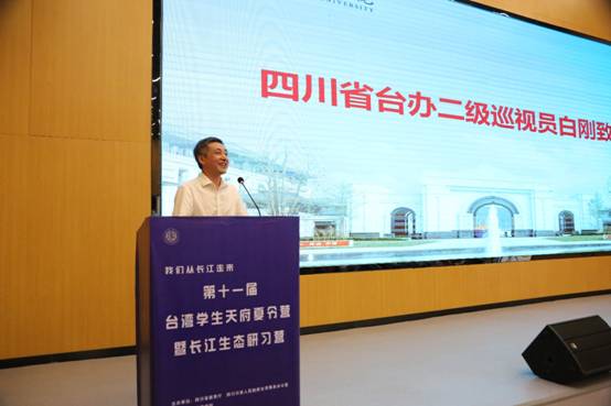 白刚在致辞中指出,四川和台湾的交流热络,建立了很多品牌。本届台湾学生天府夏令营有两个特点,一是走出了四川,重庆也是支持单位;二是突出了生态研习。四川和重庆同处于长江上游,山同脉,水同源,这次和重庆联合举办长江生态研习活动意义重大。多年来,台湾学生天府夏令营在助推四川和台湾两地之间的教育交流起到了很大的作用,成为一个知名品牌,在全国和川台两地都非常具有影响力。他希望台湾学生在接下来的研习中能积极发挥聪明才智,勇于建言献策。