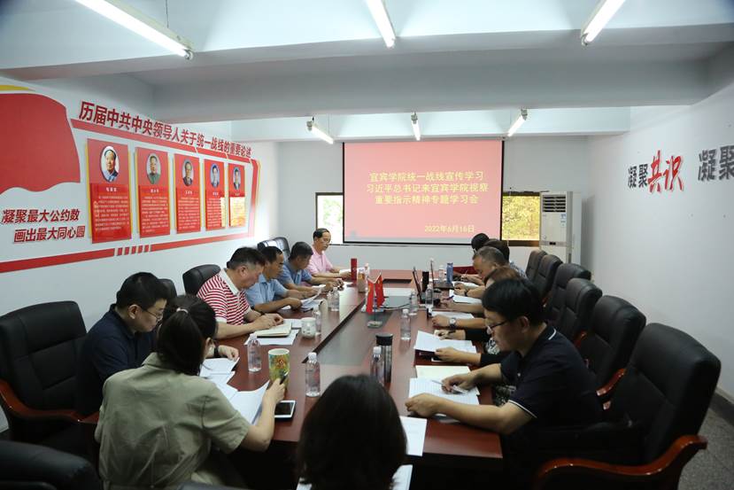 6月16日下午,宜宾学院召开统一战线宣传学习习近平总书记来川来宜视察重要指示精神专题学习会,传达学习习近平总书记来川来宜来校视察重要指示精神、省委常委(扩大)会议精神。党委副书记鲁飞出席会议并讲话,各民主党派、统战团体负责人及代表,党委统战部全体人员参加会议。党委常委、党委统战部长华曦主持会议。